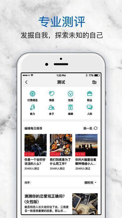 4、心理自助大餐:平台每天持续不断的提供心理学相关的文章、测试、课程、FM,让你可以学到最新鲜、最实的心理成长知识和技能,每一位用户也可以获取他人的帮助或者帮助他人。