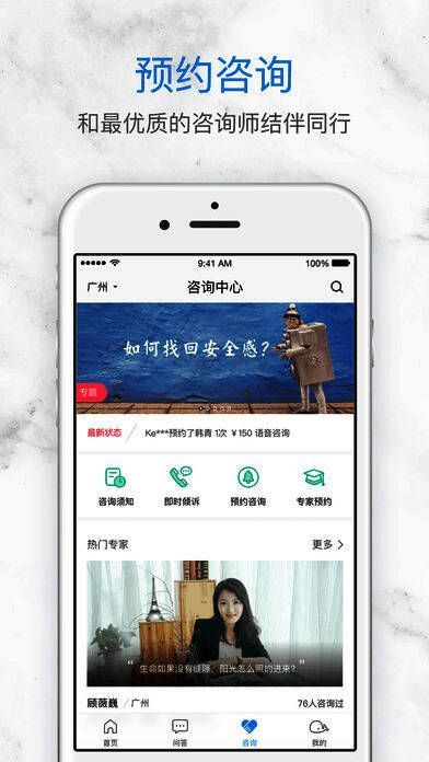 3、预约心理咨询:通过提供城市、价格和咨询方向等多维度的智能筛选,为你找到靠谱专业的心理咨询师,直接在线预约和支付,即可享受一对一的语音、视频或面对面咨询服务;