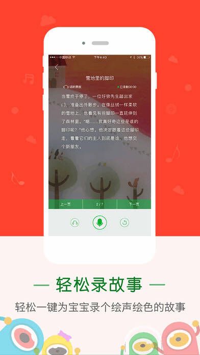 2、轻松录故事,轻松一键为宝宝录个绘声绘色的故事;