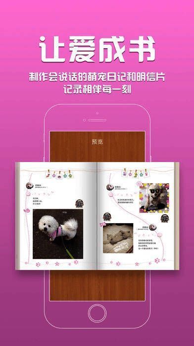 2、让爱成书:制作专属的照片书和明信片,记录爱宠成长点滴。精美全彩印刷,无论馈赠亲友还是纪念收藏,都十分有意义。扫描书中的二维码可立即播放对应说说,让萌宠日记会说话;