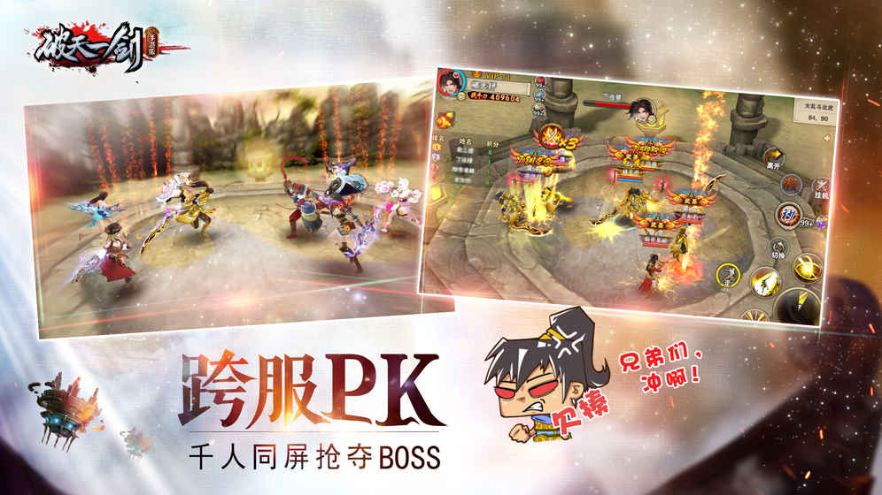 《破天一剑》手游中,江湖恩仇不再局限于小规模的战斗,感受真正不受限制的千人PK,还原大气磅礴的江湖,完全自由的真实激战,感受纵横武林潇洒来去的畅快体验。技能百变搭配,可玩性超强,用操作和意识打破等级和装备的限制,挑战强者,证明自己。