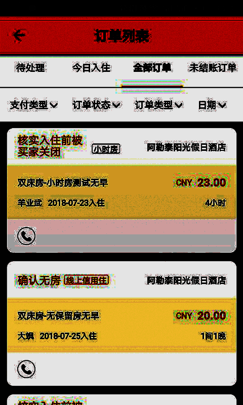 2、可自由的输入姓名、手机号、订单号来查询相关的订单号;