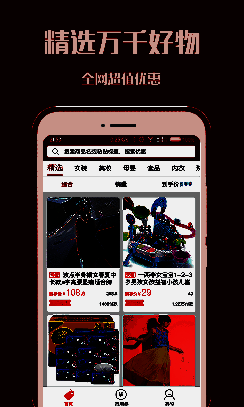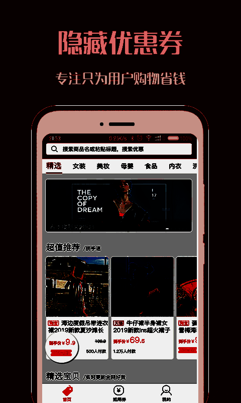 淘个个使用搜索功能不仅能找商品还能搜索优惠券,找到商品可以货比三家;