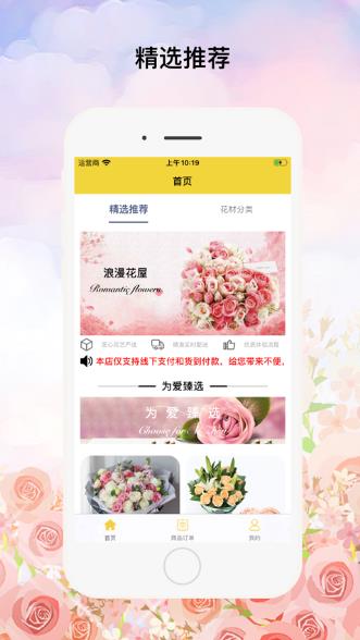 浪漫花屋(Romantic flowers)App是一款非常实用的卖花软件,在这里花的品种齐全,而且花新鲜自然,给人一种舒适之感。操作简单便利,种类齐全丰富,一键下单轻松搞定,优质服务让你安心,仅支持货到付款,一键下单,花到你家!有需要的朋友快快进来下载吧!