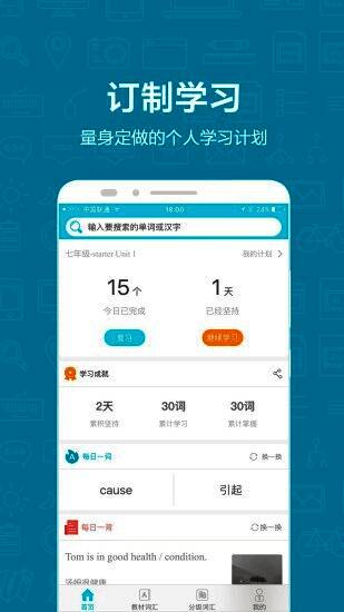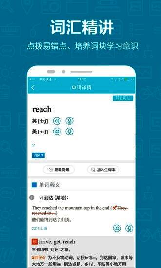 首次在正规学习用App中加入汉—英查询功能,例句中的所有单词都能跳转查询。