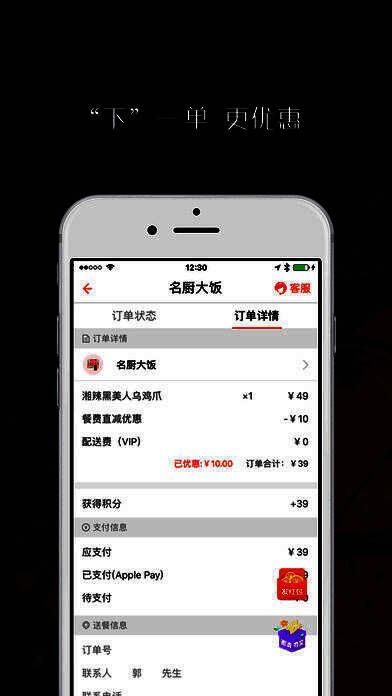 4、流畅的用户体验:三步快速订餐,一键催单,订单状态轻松追踪。
