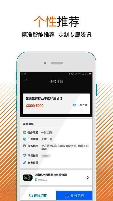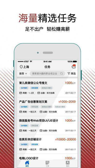 1、海量任务:海量任务呈现,涵盖设计、开发、文案等,总有一款适合你;