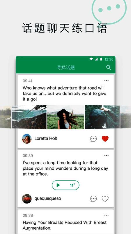 4、【发表、关注动态】发展你的社交网络,用英语与小伙伴们分享生活中的趣事。利用社交的驱动力,来提升学习过程,享受英语交流的乐趣。