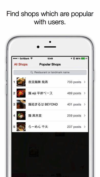 在日本App Store,我们的口号是「将吃过的拉面分享给大家,一起挑战排行榜」。全日本的拉面控,每天每天都在记录着拉面生活。
