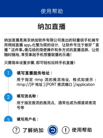 《纳加直播》是一款基于流媒体技术平台,配以纳加独创技术所开发的一款具备优秀性能现场网络直播软件。纳加EXTREME LOAD以及节点传输技术,能确保用户享有清晰、流畅在线直播收看体验,在满足广电、教育、互联网各企业用户对于活动、会议、演出等节目进行现场直播的要求。
