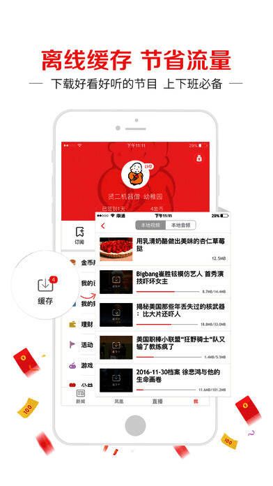 7、视频音频支持下载:上下班想看视频苦于没有流量,离线功能让你随时随地观看凤凰精彩新闻视频资讯、收听凤凰好听的声音。