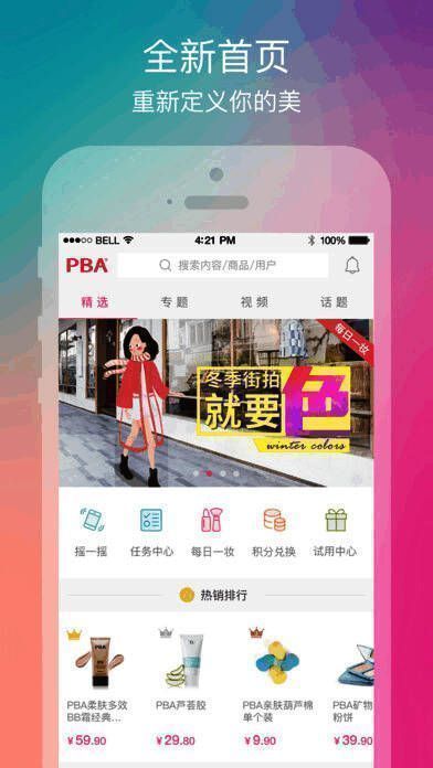 《PBA美妆顾问》是一款为新生代年轻女性量身打造的科技美容软件。为您提供高品质、评价的优质化妆品和智能硬件产品。中国美妆达人在这里分享美容经验,你可以与大家一起交流美容心得,和大家一起美丽。