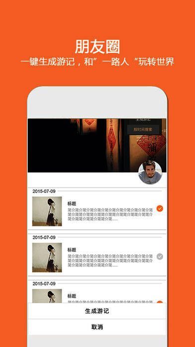 通过抓取你的文字和图片分享,配上资料和关键字,自动为你生成游记,让你从旅游作者变成旅游编辑。