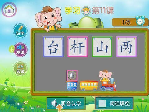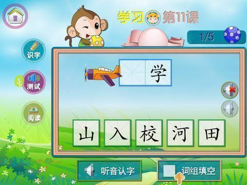 5、词组测试:当学完一组汉字后,会给出词组测试巩固识字。