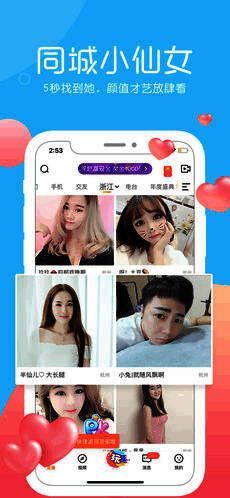 1、同城小仙女24小时在线直播,好声音、热舞、搞笑、VR等当红达人应有尽有。