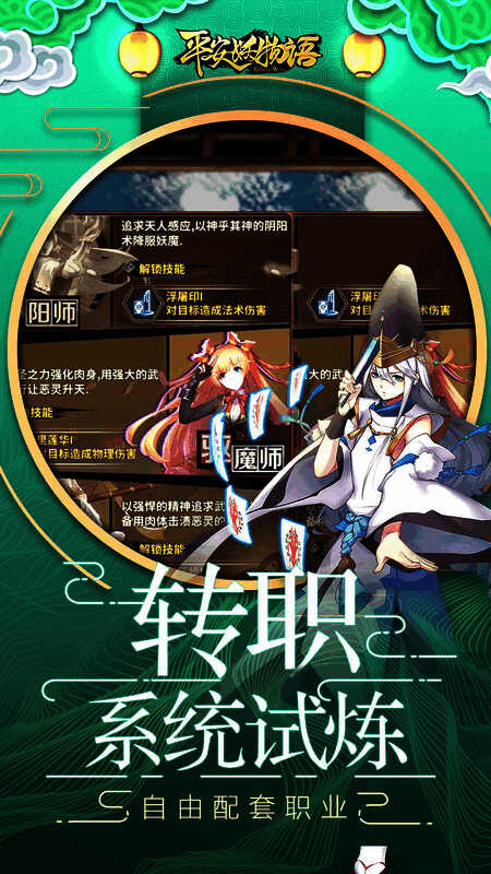延续了日本平安时代阴阳师驱妖的故事背景并加以改良,视觉体验十分精美,Q萌式神、美艳看板娘随心挑。