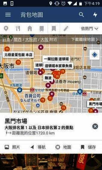 8、点击景点的导航按钮可直接开启google maps地图导航, 也支援MAPS.ME。