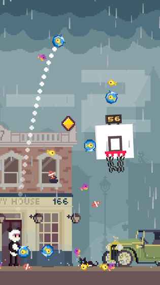 游戏画面采用像素风格制作,颇有一些复古的气息,操作上非常简单,手指滑动屏幕就能控制投篮角度和力度,玩家们只需要准确判断篮球落点即可。游戏为大家提供了各种各样外形的篮球以及角色外形,也有不同的城市街区,各位有兴趣的就赶紧来试试吧。