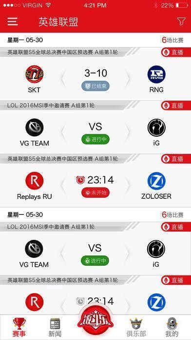 5、新闻资讯:实时的直播已经满足不了你?没关系,我们还有深度的赛事相关报道,一起跟随编辑大大感受电竞的魅力吧;