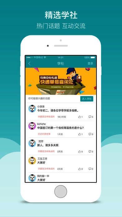 提供学生感兴趣的学社圈子、班级PK、热门话题等丰富的“课外活动”形式,让你的学习不再苦闷,一切都由你做主。
