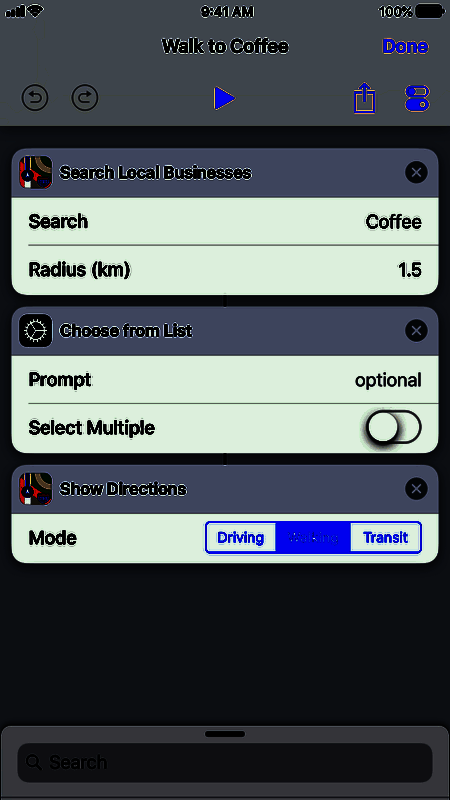 无论是让Siri自动获取回家路线并发送预计到达时间、为主屏幕添加常用联系人拨号图标、制作个性化动画GIF,还是从浏览器中生成PDF文件、一键导航至最近咖啡店、分享正在听的歌曲、批量下载网页图片、发送附带截图的信息等,都能轻松实现。此外,捷径还支持从“今天”小组件、搜索栏甚至主屏幕图标直接启动,操作灵活便捷。