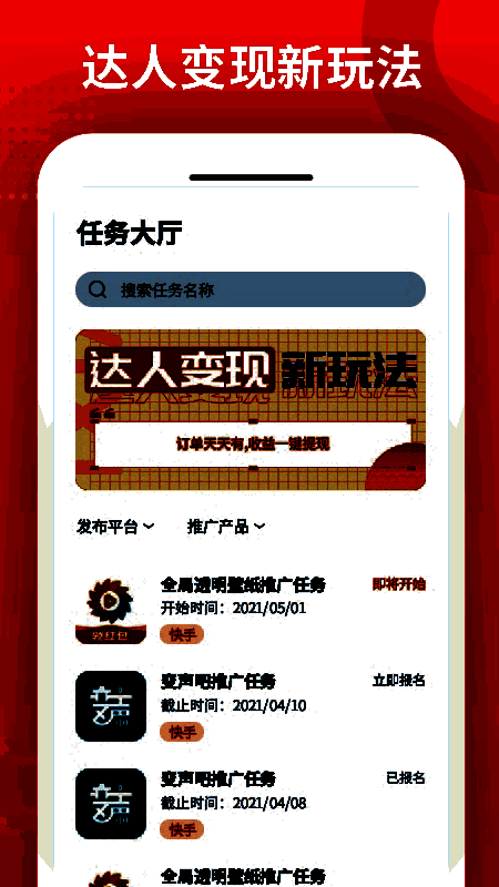1. “红人直推”在推送人中,人才可以直接报名商家发布的任务,使人才可以快速实现短视频的实现;
