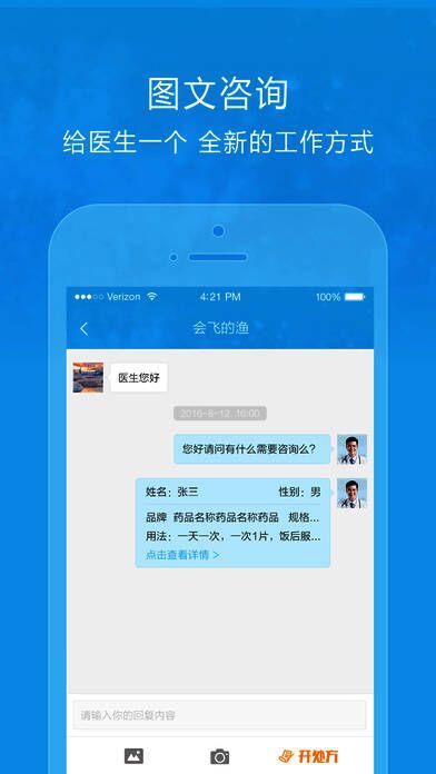 3、利用其自身的医学知识打造私人的移动诊室,为广大患者提供专业的诊疗及用药建议。