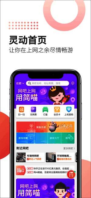 随着科技的发展,家用电脑普及率不断提升,去网吧的频率相比过去明显减少。但每逢假期或闲暇时光,约上三五好友去网吧组队开黑依然是不少玩家的首选娱乐方式。而《简喵》这款软件正是为这类用户量身打造,它不仅能够帮助你快速定位附近环境舒适、设施齐全的网吧,还支持在线预定座位、手机一键呼叫网管等功能,极大提升了用户的上网体验。