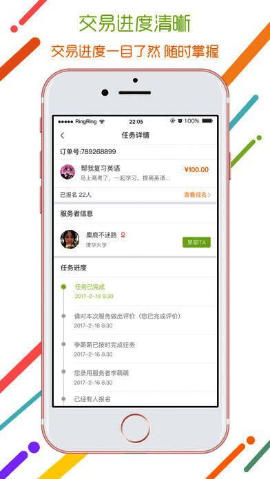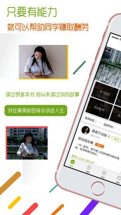 兼果校园app是一个校区服务平台,学生可以通过平台发布各种求助订单,寻找有能力的同学帮助解决,还能获得意外奖励,既能展示技术又能获取利润,一款大学生兼职服务类手机软件,这里含有海量的优秀兼职岗位,模特礼仪、服务员、家教、发传单、酒吧KTV、摄影助理、钟点工等应有尽有你还在犹豫什么了,赶紧下载使用吧。