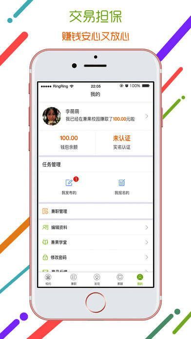 兼果app是由海南省一群90后大学生开发的。它是一款为全国在校大学生免费提供海量、安全、可靠高薪的兼职和社会实践机会的重度O2O平台,也是企业在大学生群体中跨越中介的垂直招聘平台。机会多多,工作多多,让你轻松找到满意的好兼职,喜爱的朋友赶快下载体验吧!