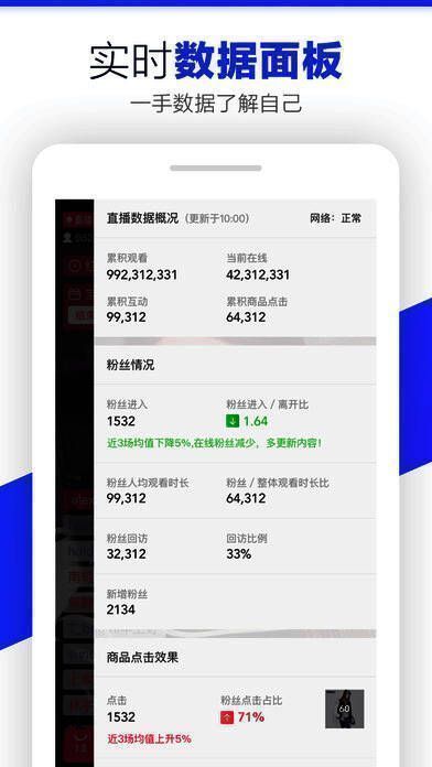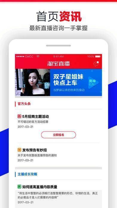 《淘宝直播主播版》是阿里推出的直播平台,定位于“消费类直播”,用户可“边看边买”涵盖的范畴包括母婴、美妆、潮搭、美食、运动健身等。