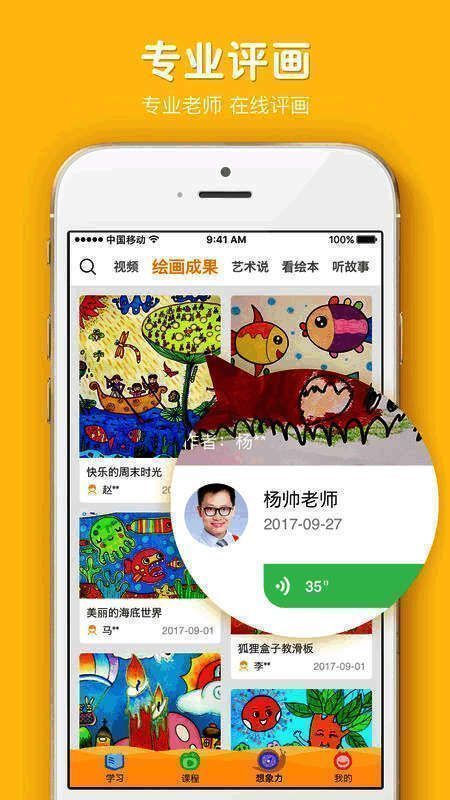 在家画画app是一款引导3-12岁孩子学画画,绘本美术和变变变思维教学软件,在家画画app、直播画画课:双师课堂,线下8年教学美院老师,点亮想象力;互动评画、儿童画审美赏析。每天30分钟宝贝学画画、儿童美术在线教育平台。