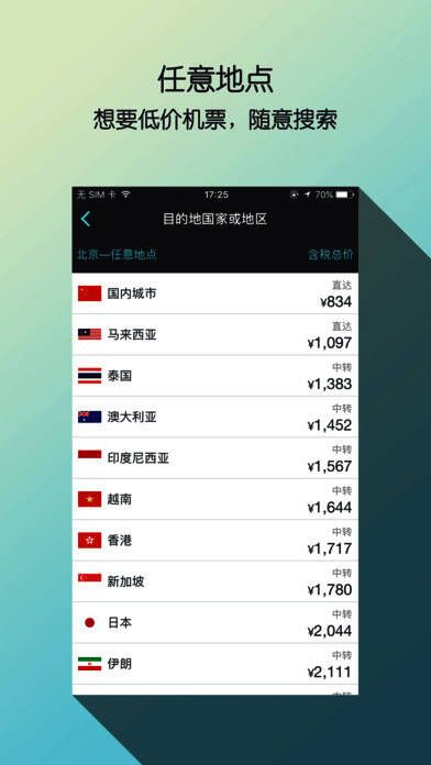 全球各大航空公司及廉价航空公司上百万条航班信息,海淘各类特价机票、打折机票、低价机票