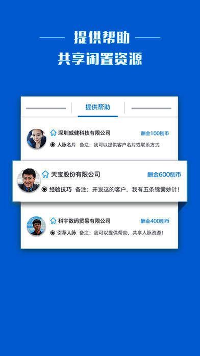 在刨客app您可以发布悬赏,请求别人帮忙介绍目标客户的销售技巧,客户资料与人脉关系,开发客户无忧。相反,您也可以主动标识,帮助别人,分享销客技巧与人脉关系,客户资料与人脉关系,收取酬金。