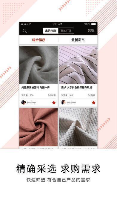 该平台目前汇集国际超过80%面辅料供应商、国内超过50%面辅料供应商,覆盖面辅料全品类,是名副其实的全球第一的面辅料交易平台。通过免费调样、米布零买和大货拼单,帮助众多品牌商和设计师,实现“足不出户,全球采购”的梦想。