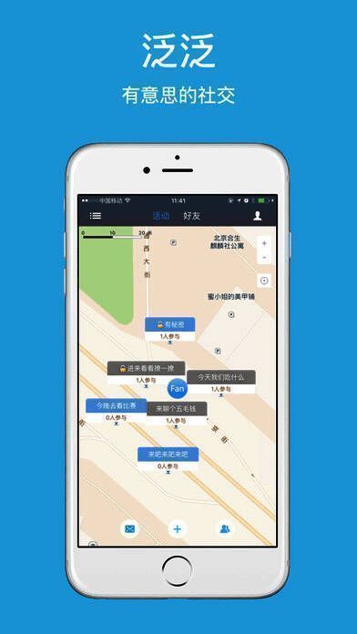 1、泛泛提供了一个基于位置的社交场景,用户可以通过手机直连网络与附近的人共同参与活动、游戏以及分享音乐、影视等内容;