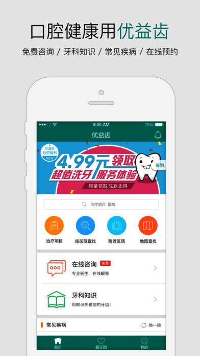 1、预约服务:患者线上预约口腔相关治疗项目,线下诊所提供服务一站式口腔健康医疗服务平台:这里有齐全的治疗项目、权威的口腔健康知识、在线答疑解惑的优质方案;