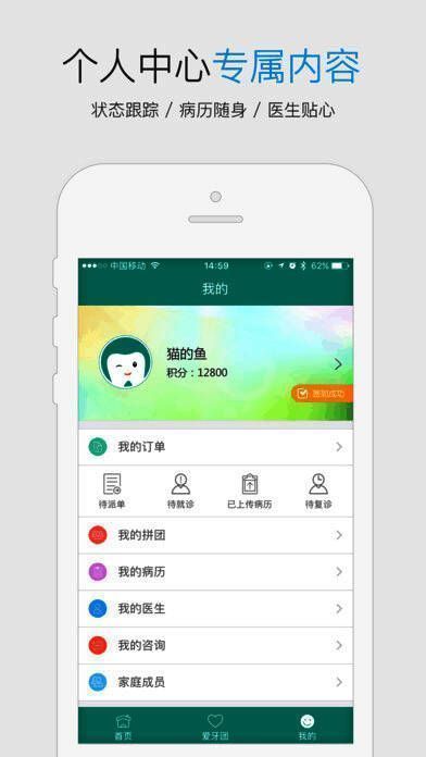 4、家庭成员:为家人或亲属预约服务,同一账号,身份分离,从而便捷管理病历及和医生沟通;