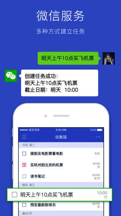 10、微信公众号:发送聊天内容或需要收藏的网页或到「滴答清单」微信公众号,快速创建任务,随时随地进行日程管理和知识储备。