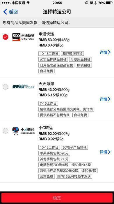 5、将到达转运仓库的商品提交转运,支付国际运费;