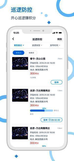 1、巡逻防控,传统的巡逻防控基本都由公安民警内部实施,但通过“星城园丁”APP 平台,大家都可以在平台中的“巡逻防控”模块领取任务,完成巡逻,获得积分。