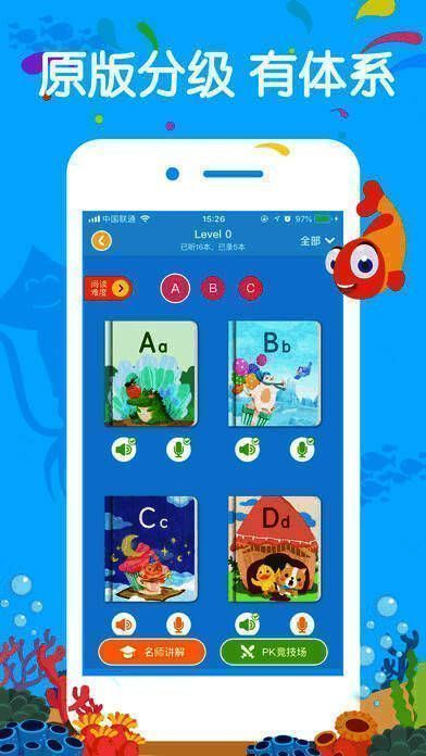 这是一款好用的英语故事绘本应用,小鱼绘本引进牛津阅读树、大猫分级、迪士尼等国际知名分级读物和绘本,针对超过1300本英文绘本进行由易至难的26级难度分级,为3-12岁孩子提供刚好能读懂的英文绘本。