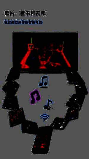 方便地从其它设备获取照片,视频和音乐:电视助手可以作为媒体接收器(渲染器),这样便可以接收其它DLNA设备上播放的媒体,比如一台运行电视助手的iPhone/iPad。