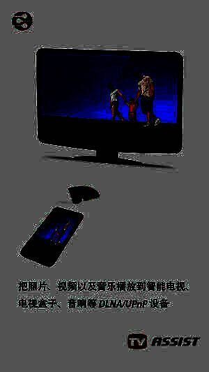 任何时候,任何地方,任何方式,与朋友或家人一起分享欢乐时光:使用电视助手,你可以以各种方式播放你喜爱的照片、 视频和音乐,如播放到客厅的电视上,以便每个人都可以看到,可以听到。
