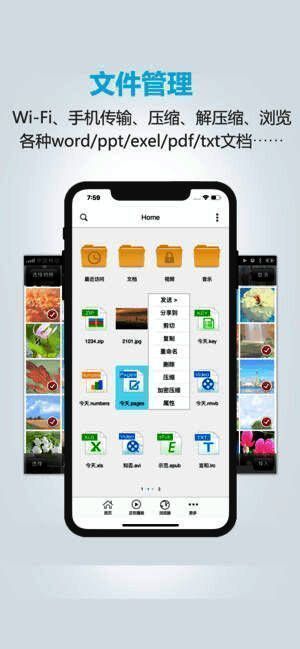 最强大的文件管理工具,最高在30个国家排名总榜第1,装机必备,不下后悔!PC、苹果设备之间自由传输图片、文件、内置网址导航浏览器,更安全,超强视频播放器,文件阅读器,异地文件分享:长按要发送的文件,从弹出的菜单中选择“打开方式” 点击微信(或类似应用)即可分享文件给异地的好友。