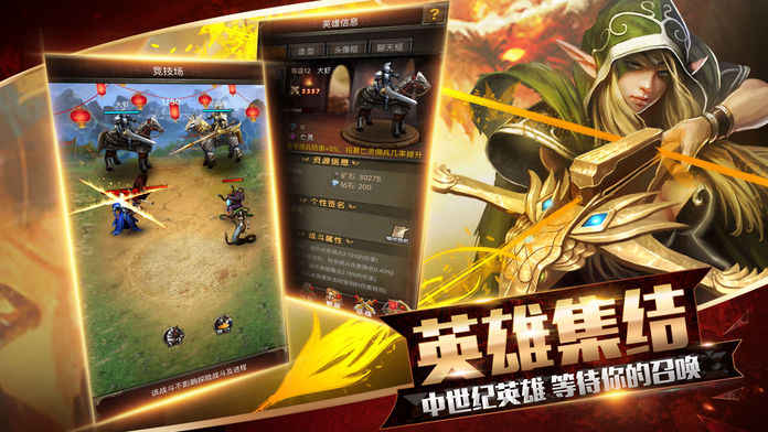 离线挂机,轻松升级,多种玩法,飙升战力,符文突破,试炼挑战,王者竞技,展现英雄本色。