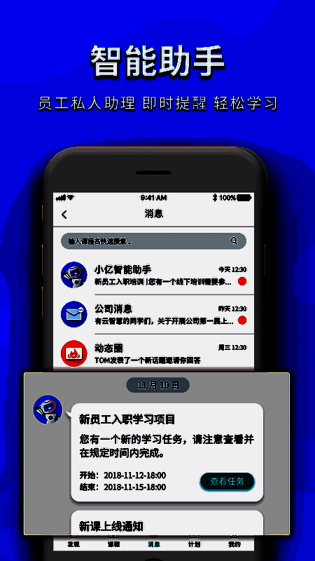 米知云app是一款帮助企业传播企业文化和培训员工的实用性软件,米知云app作为企业智能学习的云平台,能够进行全方位数据分析,随时掌握内部学习状态。米知云app可以帮助企业培训员工培训形式丰富,线上线下进行双重的推动。