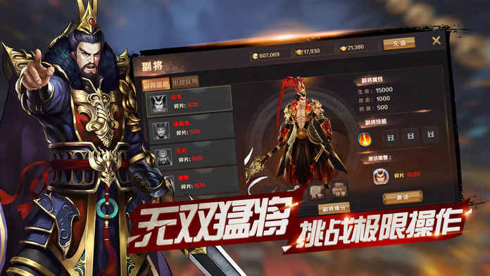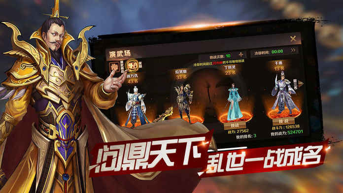 武将进阶、修炼终成大器,同时麾下士兵也可提升进阶,护主保国!多余武将无法上阵,只要有缘分即可加为旗下副将,同为主公陷阵杀敌。
