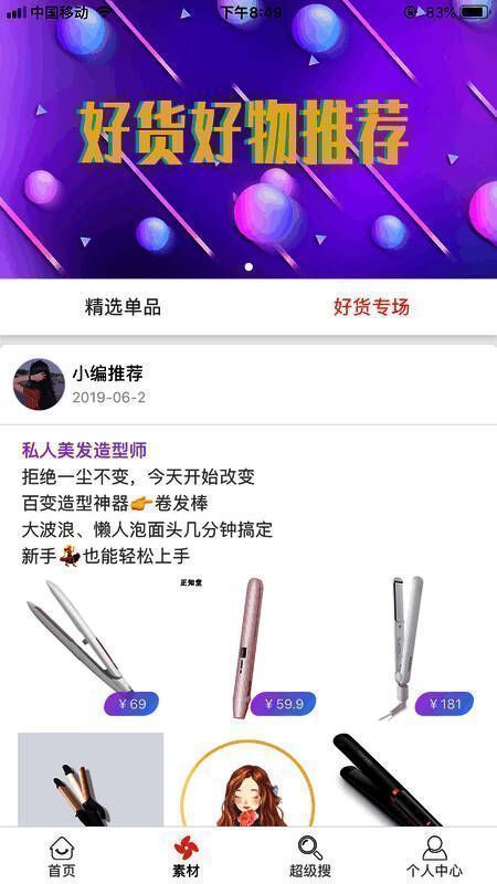 进入素材页面中,超多商品的推广素材可以直接复制使用;