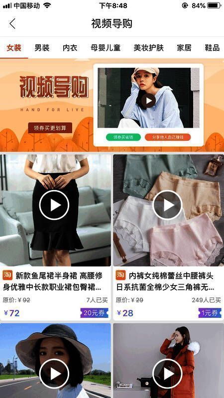 点击视频导购,在页面内提供的所有商品都可观看视频;